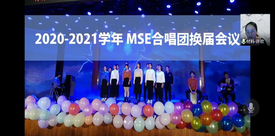 2020年6月21日上午10:00,材料学院MSE合唱团顺利举行了2020-2021学年线上换届会议,指导老师许欢以及合唱团的全体团员共同参加了本次会议。