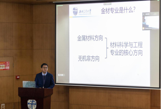 随后,金材系主任樊小强老师分别从专业发展与人才培养目标、师资队伍、实验教学与毕业去向等四个方面介绍了专业基本情况。他强调:作为西南交通大学第一批次国家一流本科专业,我们始终以培养人才为宗旨,打造优质的教学平台和卓越的教师团队,为学生的未来发展保驾护航。针对同学和家长关注的毕业去向,樊老师告诉大家:材料研究已渗透人类生活的方方面面,只要肯在自己喜欢的专业深入地研究学习,未来就拥有无限的可能。