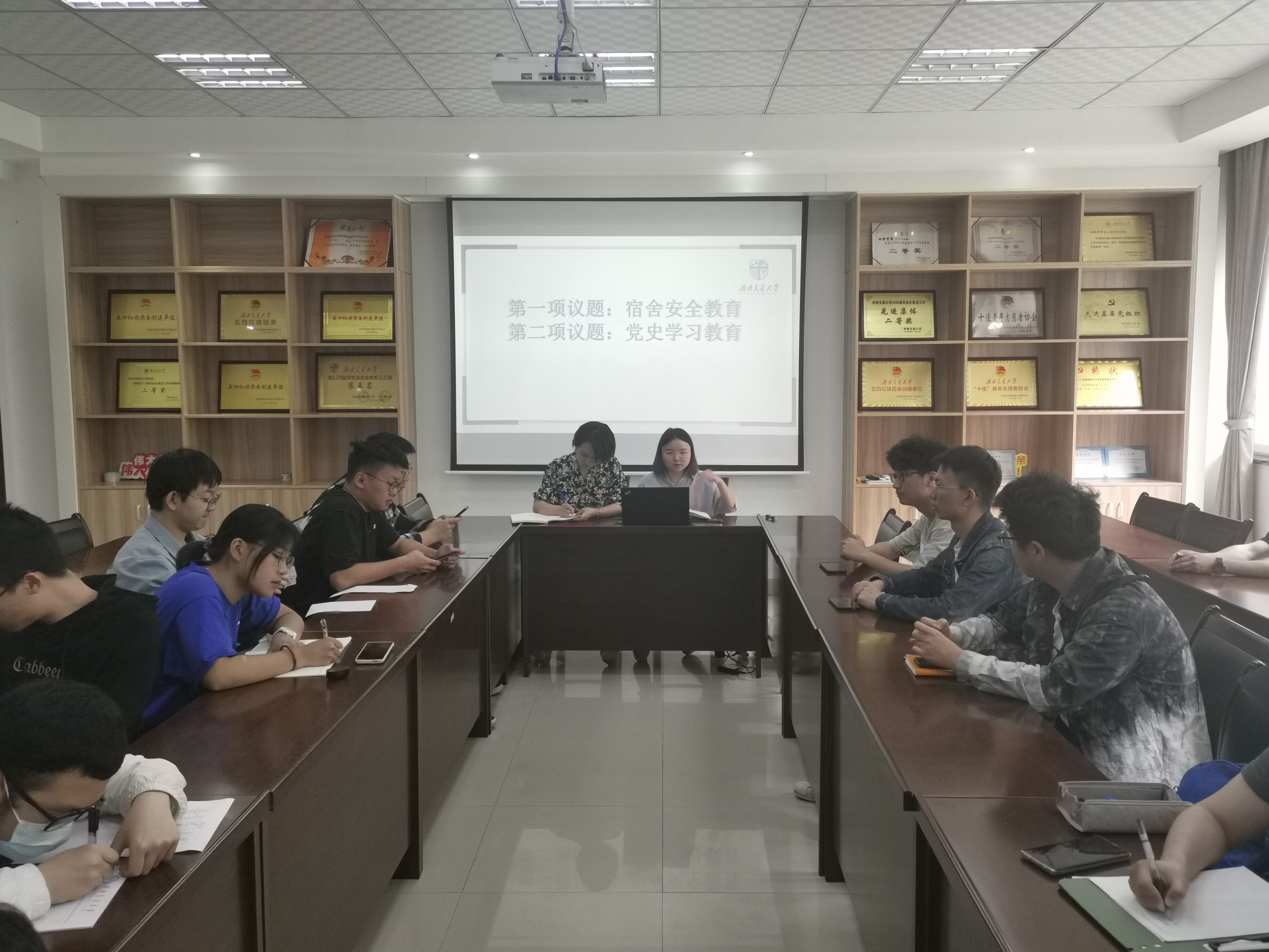 会议第四项,熊苏雅老师对各班团支书、组织委员和生活委员做出开展以“宿舍安全”为主题的会议和以“党史学习”为主题的班会,加强同学们的安全意识,对同学们的政治思想水平和基础知识进行教育提升,并要求在一定期限内对完成情况进行汇报。