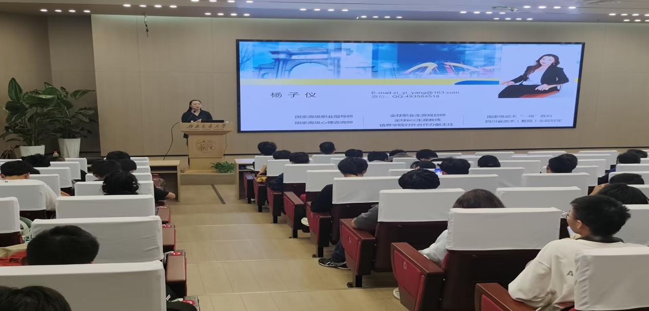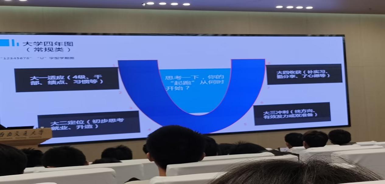 讲座开始,杨老师播放了一个名为《你大四了》的视频,并通过解读日常生活中的“选座”现象,引导新生思考如何避免自我边缘化,强调了大学生涯规划的重要性,鼓励新生们在大学期间积极探索、勇于尝试,为自己的未来奠定坚实的基础。