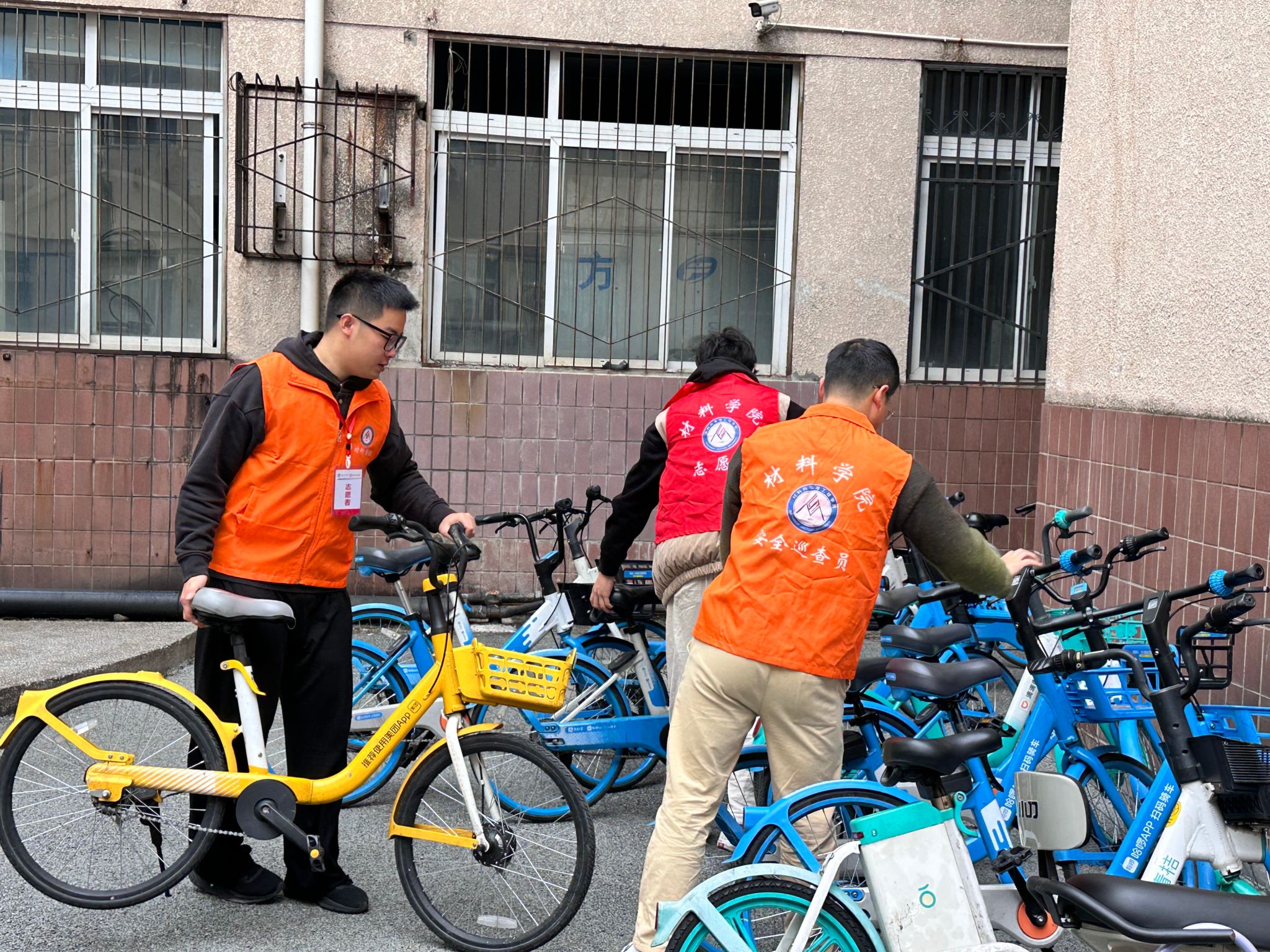 近日,西南交通大学九里校区 3 号楼周边区域迎来了一场非机动车停放秩序的整顿。为营造整洁、有序、安全的校园交通环境,材料研究生会积极组织学生志愿者开展了非机动车集中整治行动,取得了令人瞩目的成果。