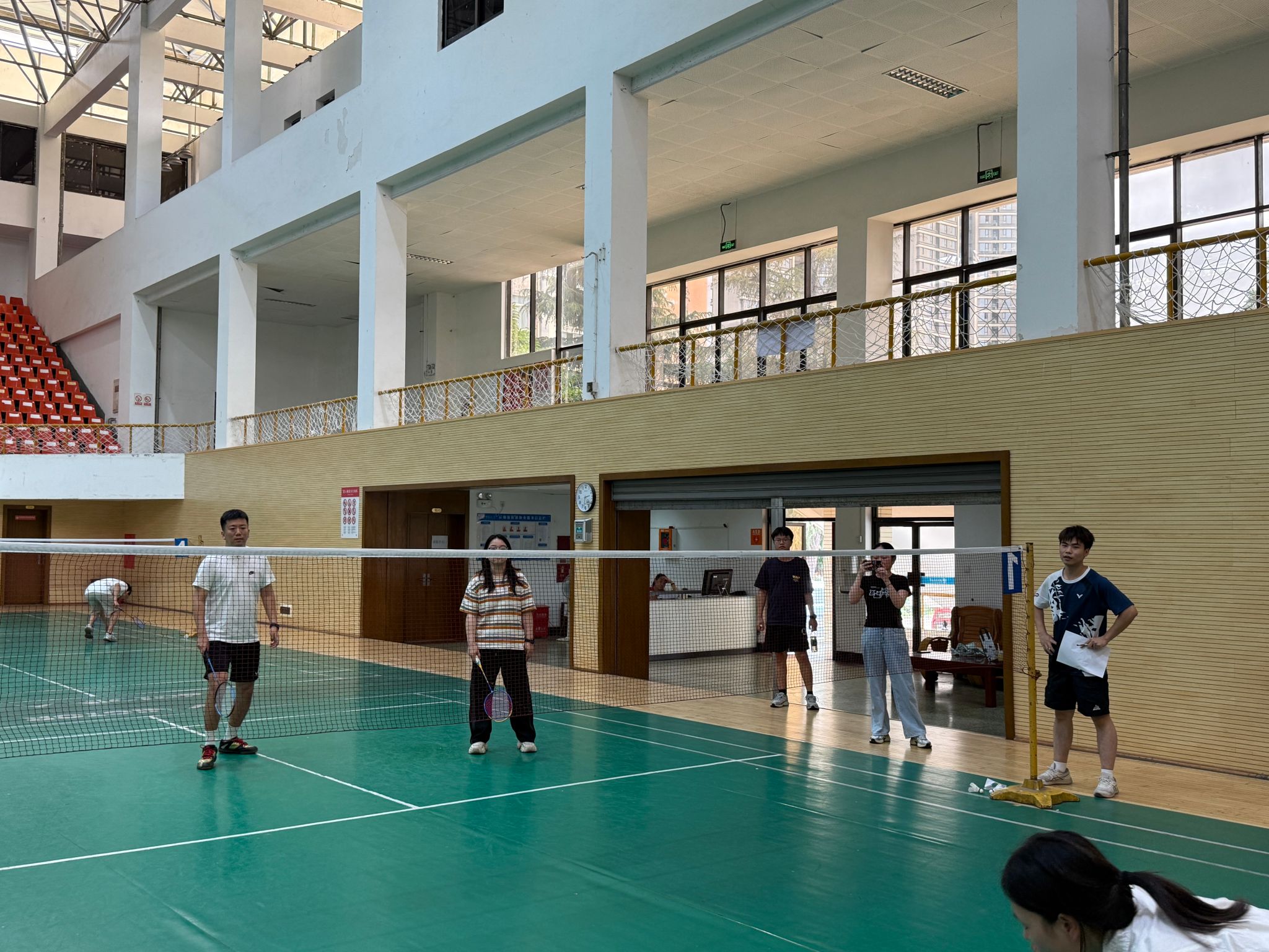 比赛设置了男子单打、女子单打及混合双打三个项目,采用分组循环赛与淘汰赛结合的友谊赛制。选手们从小组赛开始便全力以赴,扣杀、吊球、扑救等精彩场面频现,展现出扎实的技术功底与默契的团队配合。混合双打项目中,搭档间的战术讨论与相互鼓励成为赛场上一道亮丽的风景线。学院为优胜者颁发了奖状及纪念奖品。