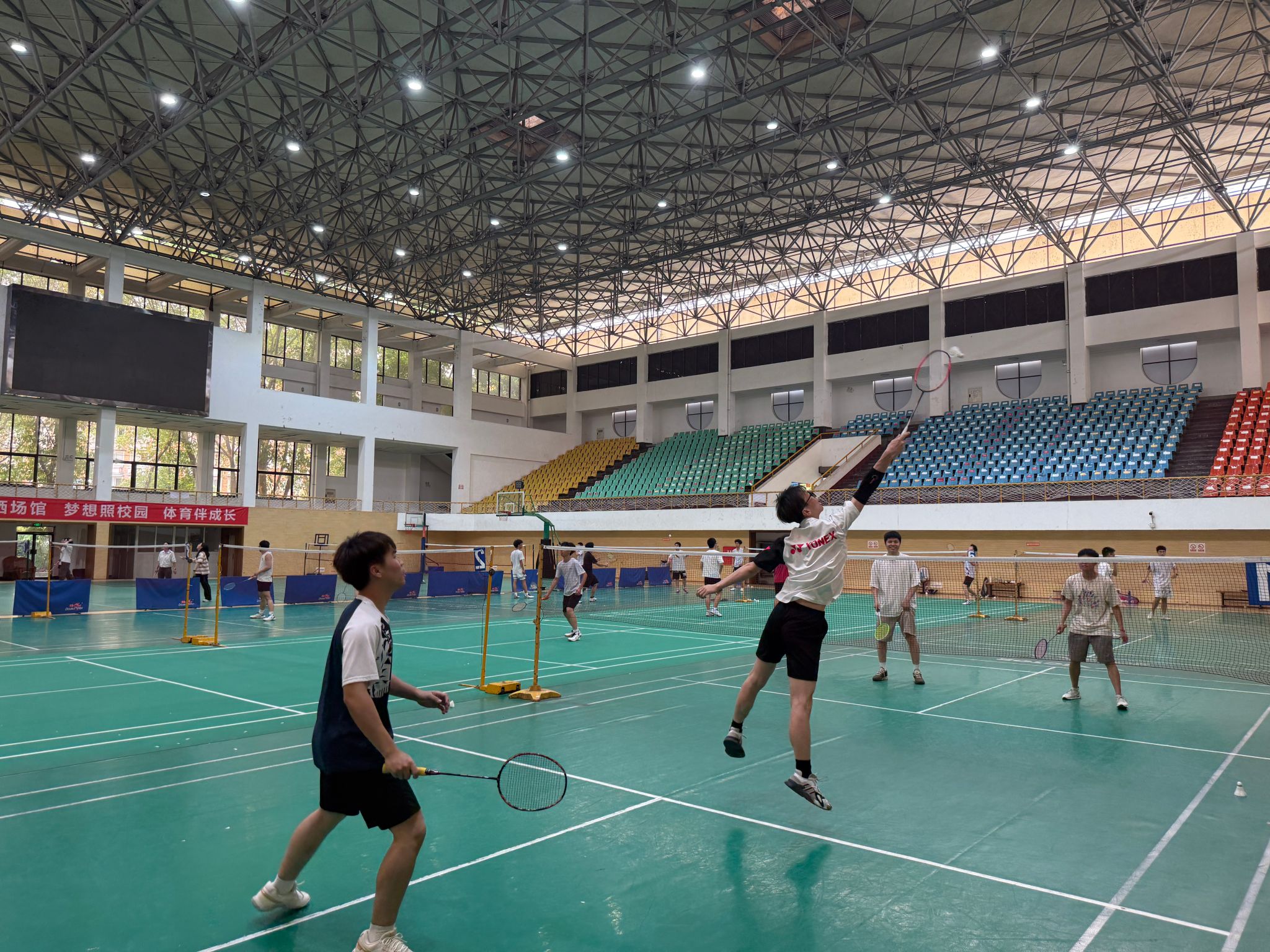场边观众的热情同样点燃了整个场馆。同学们自发组成啦啦队,为选手加油助威,欢呼声、掌声此起彼伏。不少同学表示,即便未参赛,观战过程也令人心潮澎湃,感受到了运动的魅力。