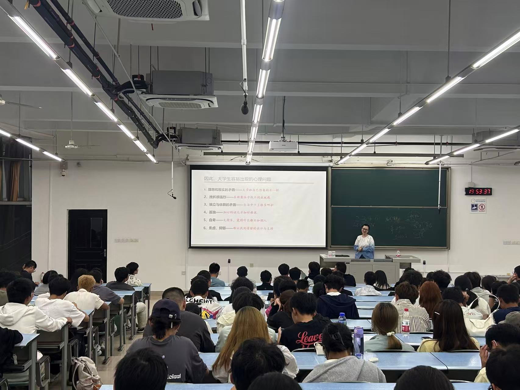 在心理健康教育环节,冯缙围绕新生常见的学业压力、人际适应等问题展开讲解,明确介绍了学校心理咨询服务的具体位置与预约方式。冯缙强调,“遇到困扰别硬扛,主动寻求帮助是对自己负责的表现”,并鼓励同学们践行“助人自助”,既关注自身情绪状态,也主动关怀身边同学,共同营造积极健康的成长氛围。此外,教育还结合大学生未来发展的长远需要,指出心理健康不仅是个人抗挫折能力的基础,更是学会关心他人、传递温暖的重要过程。