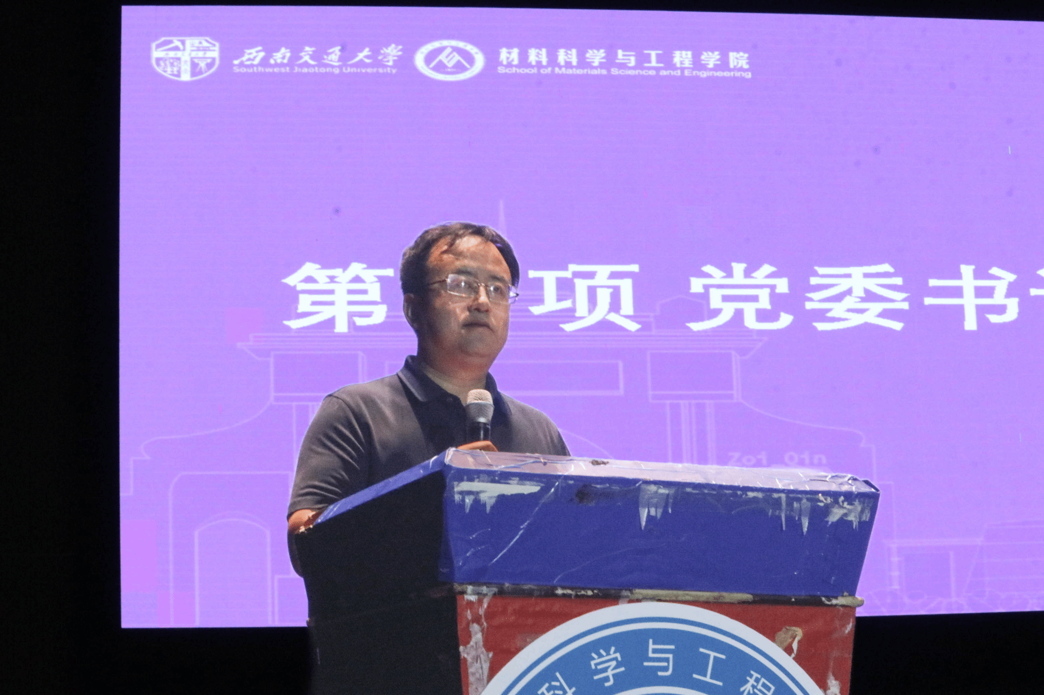 张占军代表学院党政和全体教职工员工欢迎大家加入材料学院大家庭,并恭喜大家成为一名交大人、一名“才子才女”。张占军指出,同学们即将肩负起“竢实扬华”的重任,传承“自强不息”的精神,他在此提出几点期望,一是希望大家坚定信念,牢记目标,茁壮成长。立志做有理想、敢担当、能吃苦、肯奋斗的新时代好青年。二是希望大家全面发展、均衡发展。积极锻炼身体,实时调整心态,提高学习、思考能力,成长为一专多用的复合型人才。三是希望大家团结互助,热爱集体,爱国荣校。主动拥抱集体,用心接纳同学。