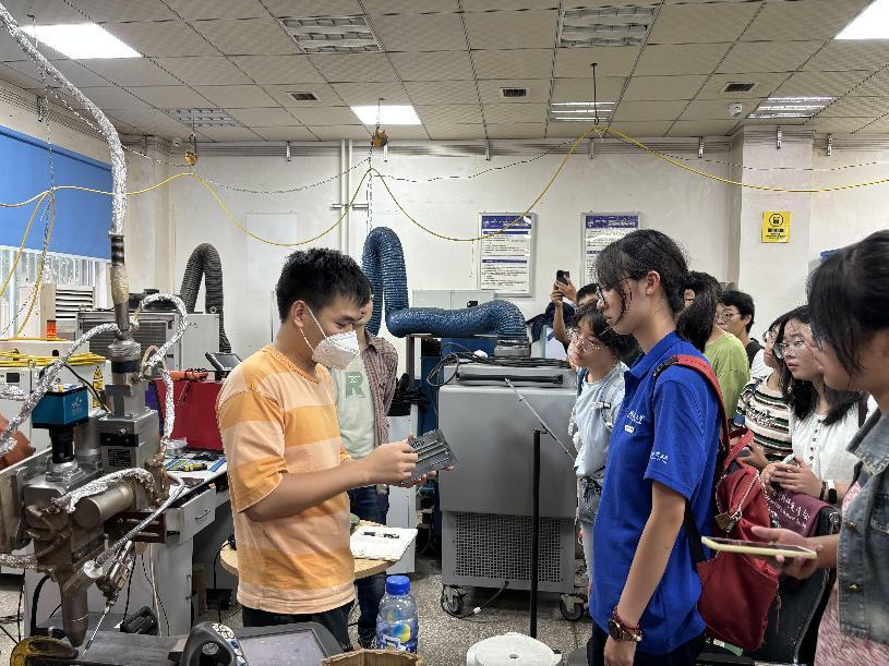 参过过程中,老师们向同学们介绍了实验室基本情况和特点、实验设备以及实验成果等,在这里,他们亲眼见证了各种先进设备如何精准地制备出不同性质的材料,新生们对材料科学有了初步的了解。同学们对实验内容产生了浓厚兴趣,纷纷停下脚步观察、拍照记录学习,纷纷提问,与老师和实验室工作人员进行了深入的交流。这种互动不仅解答了他们的疑惑,也激发了他们对材料科学的浓厚兴趣,深刻体会到了材料科学在工业生产中的重要作用。