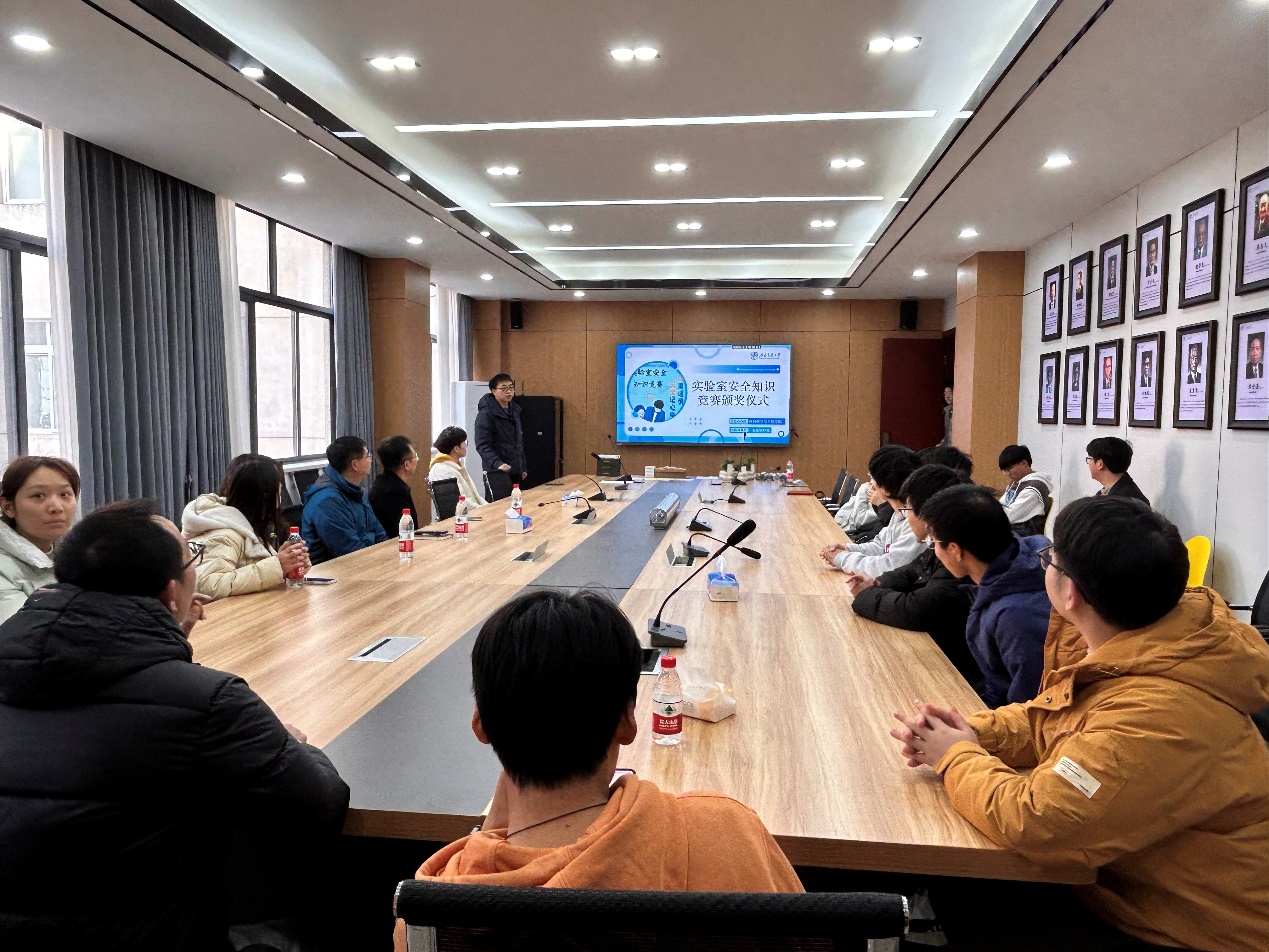 颁奖仪式在热烈的掌声中正式开始金属材料系副主任姜欣老师主持。姜欣详细介绍了本次活动的主要目的,强调了实验室安全知识竞赛的重要意义。他指出,通过此次竞赛,不仅希望提升同学们的安全意识,更希望通过这种互动的形式,激发大家对安全知识的深入学习和思考。