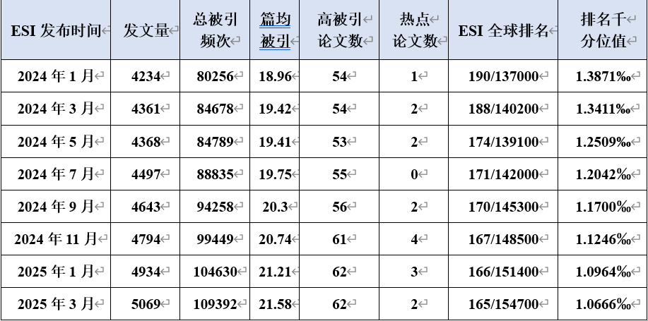 2025年3月13日,ESI数据库更新了最新一期数据。西南交通大学材料科学学科全球排名165位,较上期提升了1位;ESI排名千分位由1.096‰提升至1.067‰。近一年来,威廉希尔WilliamHill官方网站ESI材料科学学科的全球排名处于稳步上升态势。