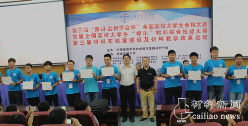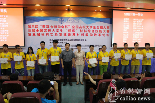 随后,出席闭幕式的各位领导为获得第三届“蔡司·金相学会杯”全国高校大学生金相大赛特别奖、一等奖的选手以及获得首届全国高校大学生“标乐”材料综合技能大赛特等奖、一等奖的选手颁奖,并合影留念。