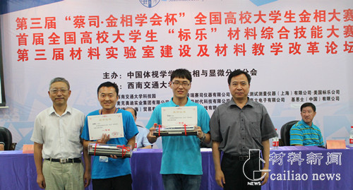 经过三天的紧张比赛,第三届“蔡司·金相学会杯”全国高校大学生金相大赛、首届全国高校大学生“标乐”材料综合技能大赛暨第三届材料实验室建设及材料教学改革论坛圆满落幕。西南交大学子在比赛中发挥出色,在金相大赛中夺得一等奖两项,材料综合技能大赛中获得一等奖两项,其中威廉希尔WilliamHill官方网站许璐迪同学获得材料综合技能大赛特等奖。