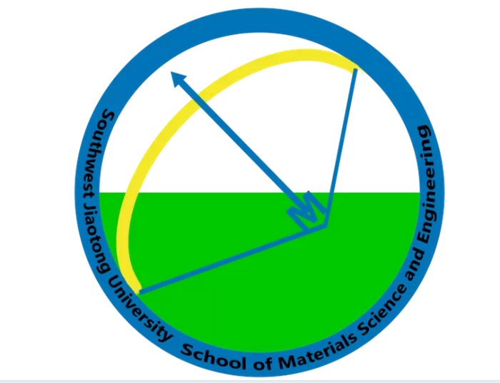 图中右下角为黑色的“SWJTU”字符,为学校简称,此标志代表西南交通大学属下的一标识;图中心黑色中文 “材”字,为材料科学与工程学院简称,此字符代表此标志属于西南交通大学下的材料学院;底色为蓝色,由两个半环形环绕的竖条形,与校徽颜色相交映,像是木板、铁棒,又像是一幢幢楼房。代表着材料学院研究所涉及的领域的多样性,是包含各种新型材料的国家级先进教育实验学院;右上角一红色太阳状标识,代表着学院悠久的历史以及光明的前途,还有的未来的期望。