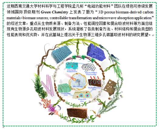 西南交大孟凡彬《Green. Chem.》邀稿综述:生物源三维多孔碳基吸波材料研究进展