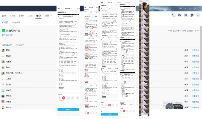 结合团支部的活动要求,我们定此次云上会议的名称为“疫”路同行,材无所惧,我们通过钉钉组织大家进行线上会议,此次会议邀请到材料学院辅导员李秀娟老师以及王一涵同学的参加。会议开始由曹胜同志主持开展并说明此次云上组织生活的具体事宜。首先,组织全体参会成员切出屏幕同时在线打卡青年大学习第二期——“疫情防控的人民战争”,学习完成以后要求每位成员截屏打卡。接着,为了了解支部同志及班级成员对防疫知识的掌握情况以及疫情期间的自我防护意识,由支部书记卢敏同志将前期准备的关于防疫知识的题目以作业的形式布置在QQ群里,组织大家完成作业并提交。然后是线上分享感闻,各参会成员也纷纷发表了疫情期间的感闻,让会议气氛在轻松愉快中进行,期间各位党员同志也纷纷表达了对祖国、对武汉、对医护人员的祝福,接着由曹胜同志共享屏幕大家一起观看了关于疫情防控知识的视频。最后辅导员对此次会议进行总结,对此次云上组织生活进行了充分的肯定,并表达了对同学们的嘱托与祝福,本次云上组织生活到此结束。