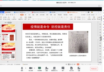 本次会议包括学习习近平总书记重要讲话精神,疫情期间各项部署,还有抗疫期间优秀模范事迹。会上,在李红林同志的主持下,大家在线上认真学习了习近平总书记的讲话。通过这次学习,让支部的每一位成员都深刻的明白,勇于斗争、勇于胜利,是中国共产党人鲜明的政治品格,也是我们的政治优势。面对这次疫情,党和人民都做了许多努力,这是对中国共产党和中国人民的一次考验,既有经验也有教训,在党的坚强领导下,疫情防疫攻坚战胜利指日可待。