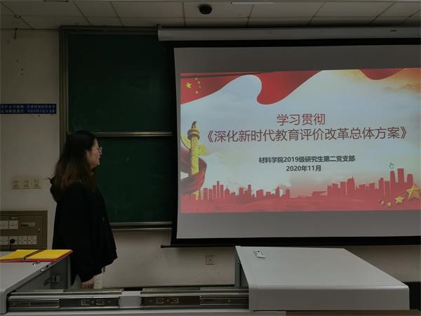 【研究生党建】学习贯彻《深化新时代教育评价改革总体方案》 --材料学院2019级研究生第二党支部组织生活会