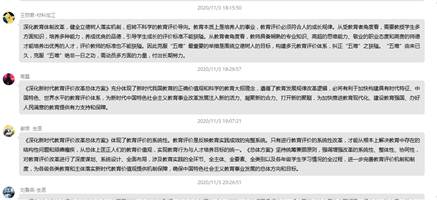 接下来,严涵同学也发表了自己的一些心得。他说道:教育是国之大计,党之大计,教育评价是树立正确办学导向的指挥棒,也是提高现代教育治理能力的关键点。我们应该扭转不科学的教育评价导向,坚决克服五唯,增强深化新时代教育评价改革的责任感、使命感和紧迫感。对于重点的领域、关键的环节和主攻的方向,我们应该明确和强调。我们应该把握促进德智体美劳全面发展的要义,着力改革学生评价,为学生树立科学成才观念,完善德育评价,强化体育评价,改进美育评价,加强劳动教育评价,严格学业标准,深化考试招生制度改革。培养一流人才, 产出一流成果,主动服务国家交通强国”“教育强国”“一带一路倡议等需求。《总体方案》的出台,顺应时代发展潮流,功在当代,利在千秋。
