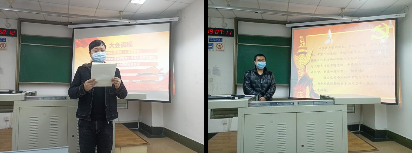 在会议正式开始之前,全体起立,奏唱《国歌》。组织委员周磊清点到会人数,实到正式党员人数达到了参会正式党员人数的半数以上,会议可以召开。首先,申请转为预备党员曾崎和李冕同志分别宣读了入党申请书,从思想认识、理论学习、工作生活等多方面总结汇报了入党考察期间的表现以及这一年多以来的成长进步,并讲出了自身的不足之处,同时也表达了自己加入中国共产党的诚恳愿望。