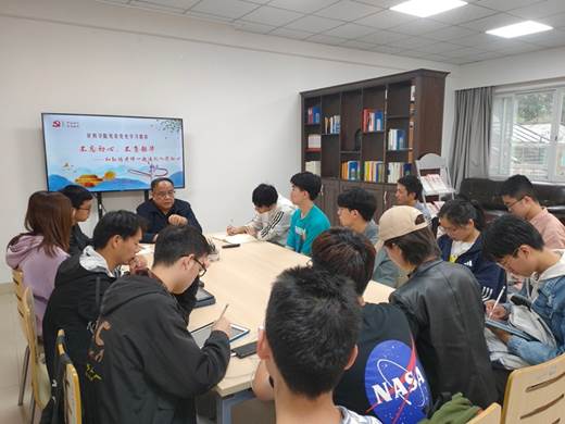 最后,孙鸿老师对新一代青年在疫情防控工作中展现的责任感和使命感予以充分的肯定,称赞他们是祖国的未来和希望。孙老师叮嘱各位青年同志:一要抱着终身学习的态度学习党史;二要真诚地和党组织交心;三要认真开展批评与自我批评;四是作为学生党员一定要不断加强专业学习。