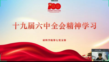 为深入开展党史学习教育,将学习走深、走实。2021年11月12日晚,材料学院第七党支部在线上开展党的十九届六中全会精神学习专题学习会,会议由党支部书记张渤涛主持,支部全体党员参会。