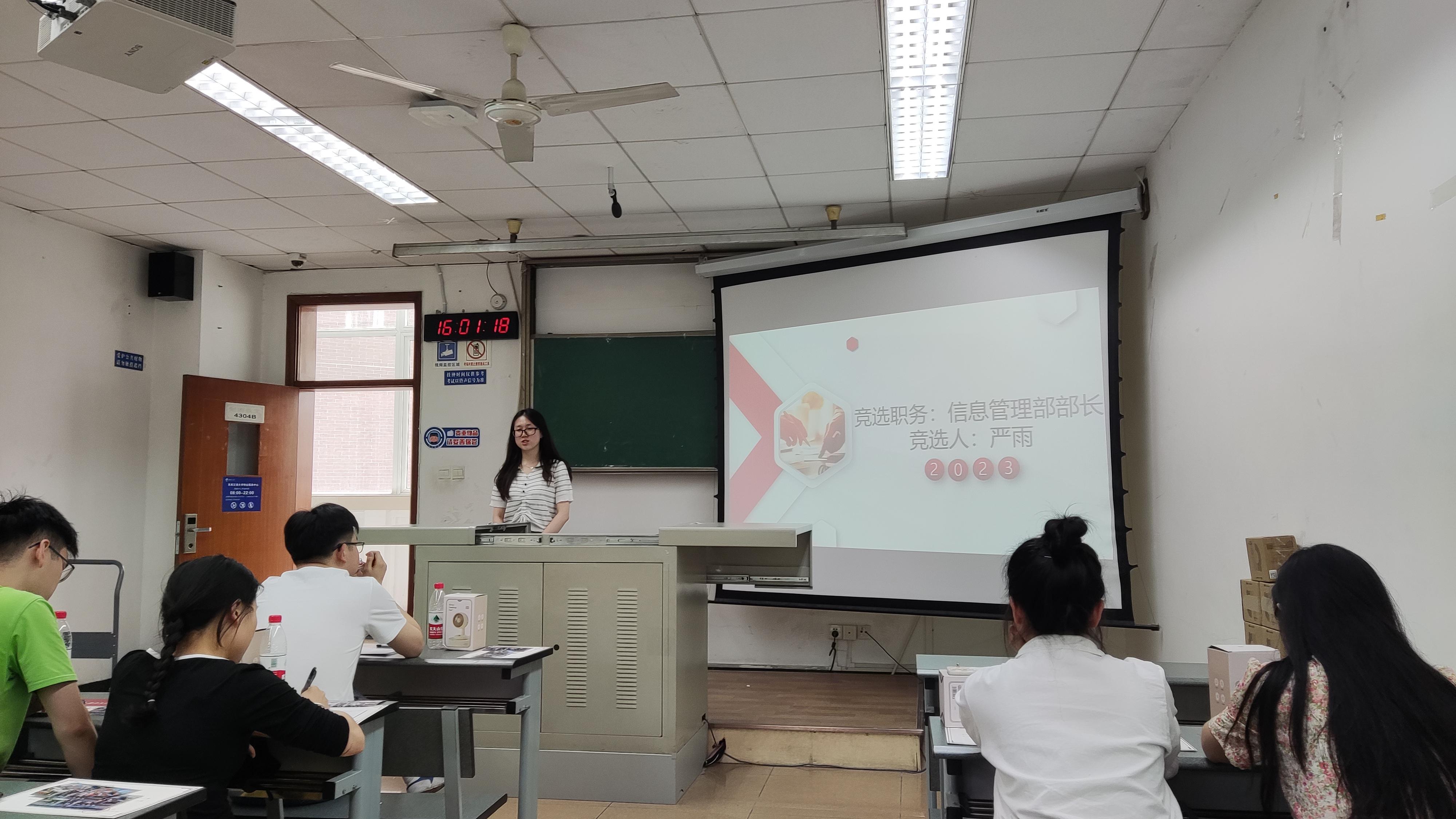 接着开展了研究生党建中心换届竞选,六位候选人分别上台答辩,展现自身优势并对未来党建工作提出设想,表达了自己愿意为组织全心奉献的工作态度。全体干部对候选人的竞选汇报进行提问考察,针对思想政治素养、业务能力、组织能力等方面进行全面评估,以确保公平择优。