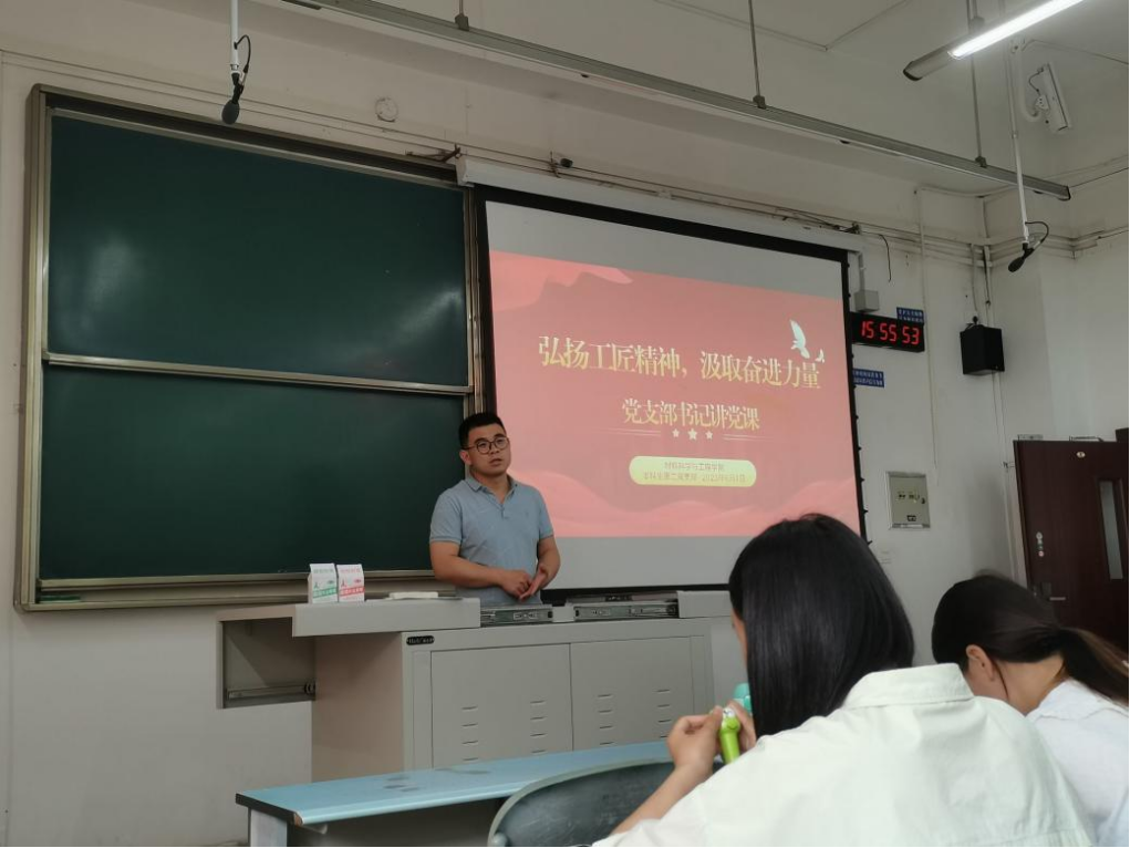为扎实推进主题教育走深走实,材料学院本科生第二党支部立足“支部同志即将进入就业季”这一实际,于2023年6月1日举行“弘扬工匠精神,汲取奋进力量”主题党课。本次党课旨在帮助全体同志厚植职业精神,提升职业道德,端正职业态度,为接下来的就业择业打牢思想基础。支部全体同志50余人参加,党支部书记郑纪伟同志主讲。