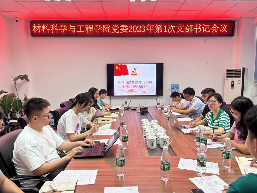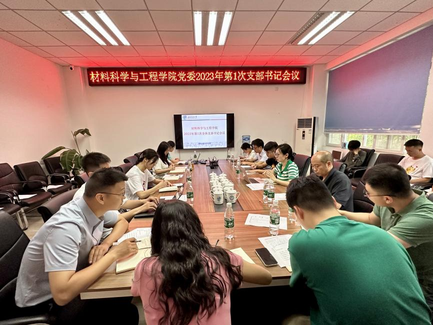 2023年7月12日上午,材料科学与工程学院党委2023年第一次全体党支部书记会议在九里校区3325会议室召开。常务副院长李涛、党委副书记熊钰、组织员严翼飞及全体党支部书记参加。受党委书记陈勇委托,会议由熊钰主持。