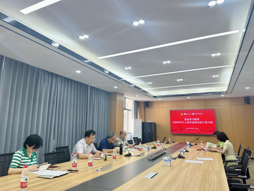 5月13日,材料科学与工程学院党纪学习教育第一期读书班暨党委理论学习中心组专题学习会在九里校区3310会议室召开。读书班以自学、领学相结合的形式分阶段开展。全体党委委员、领导班子成员、各系主任、综合办公室主任、专职组织员参加了本次学习。