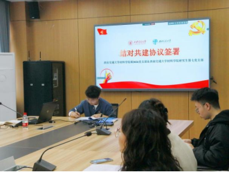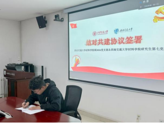 西安交通大学材料学院硕3026党支部与西南交通大学研究生第七党支部书记共同签署《支部结对共建协议书》。协议强调,双方党支部要定期组织联合学习活动,深入学习党的理论和政策,提高党员的政治素养和理论水平,鼓励党员之间开展学术交流与合作,分享科研经验,推动学术成果的转化与应用。同时要加强开展社会实践活动,服务学校师生,锻炼党员的实践能力,增强社会责任感,定期举行文体活动,丰富党员的课外生活,加强党支部之间的团结与友谊。