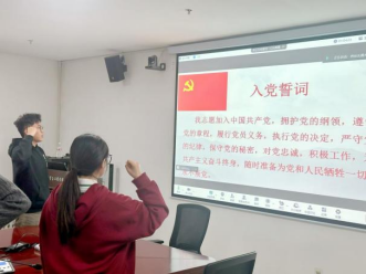 西安交通大学材料学院硕3026党支部书记张绪茂带领大家重温入党誓词。庄严肃穆的重温入党誓词活动,使每一位党员干部再一次接受心灵的洗礼,进一步坚定了立场信念。