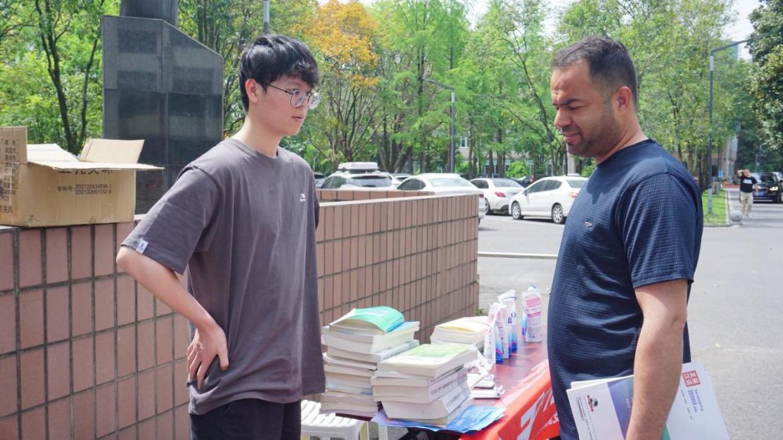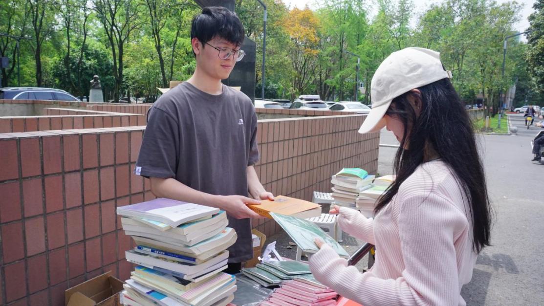 同时,旧书换礼活动也进行得如火如荼。在党员志愿者引导下,参与师生有序完成书籍分类、换书登记,兑换礼品。截止下午4点活动结束,成功回收专业教材、文学读物等一百余本。这场充满温度的书香接力,既是对绿色发展观的有力践行,更展现出新时代青年知行合一的公益担当,让每一册流转的书籍都成为丈量社会责任的精神坐标。