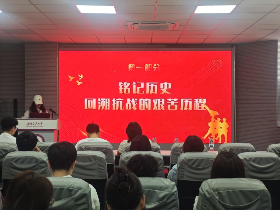 会议严格按照议程进行。第一项,集体学习习近平总书记在纪念中国人民抗日战争暨世界反法西斯战争胜利80周年大会上的重要讲话精神。党员闫欣月同志带领大家回顾了波澜壮阔的抗战历史,重温了阅兵仪式的深刻意义,并深入解读了伟大抗战精神的时代价值与现实启示。她结合近期国际形势,强调了铭记历史、捍卫真相的极端重要性,号召大家作为新时代的研究生党员,必须将抗战精神传承好、弘扬好,将其转化为攻坚克难、科研报国的强大动力。